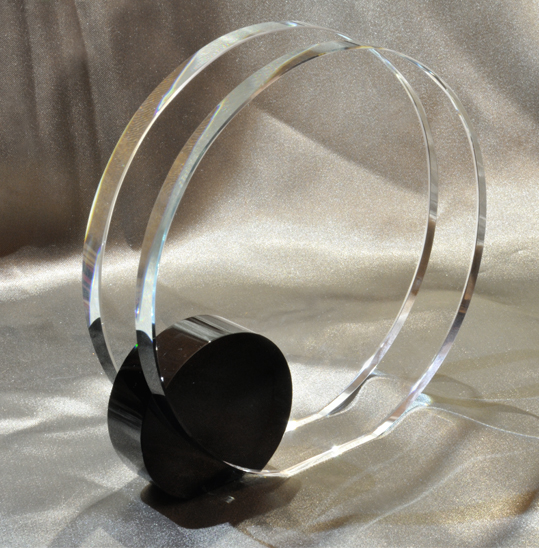 Награда из прозрачного и черного стекол, без подставки. Высота - 150 мм, ширина - 150 мм.