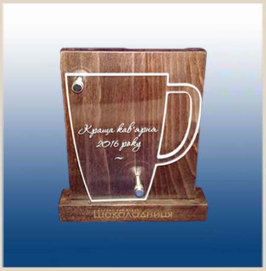 Награда для лучшей кофейни 2016 года, использованы материалы - дерево и стекло